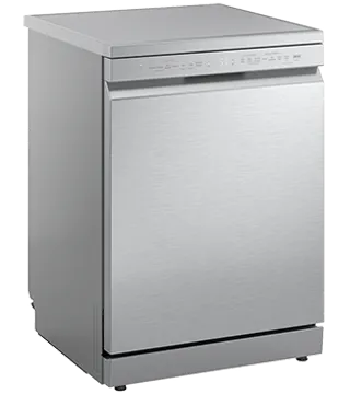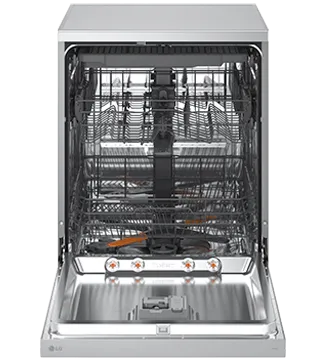 Máquina de lavar loiça LG de 14 conjuntos com QuadWash, TrueSteam e EasyRack Plus para lavagem potente, eficiente e silenciosa.