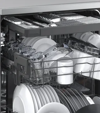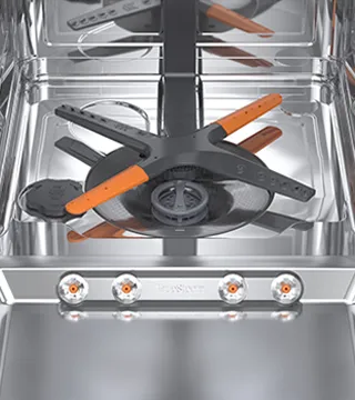O sistema QuadWash utiliza um braço pulverizador de quatro movimentos para garantir que toda a loiça recebe jatos de água de diferentes ângulos, oferecendo uma limpeza mais completa em cada ciclo.